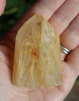 Beautiful high grade golden healer tower from Brazil! This piece is approx 2.3 inches tall, 1.7 inches wide and weighs 101.5 grams (3.58 oz).